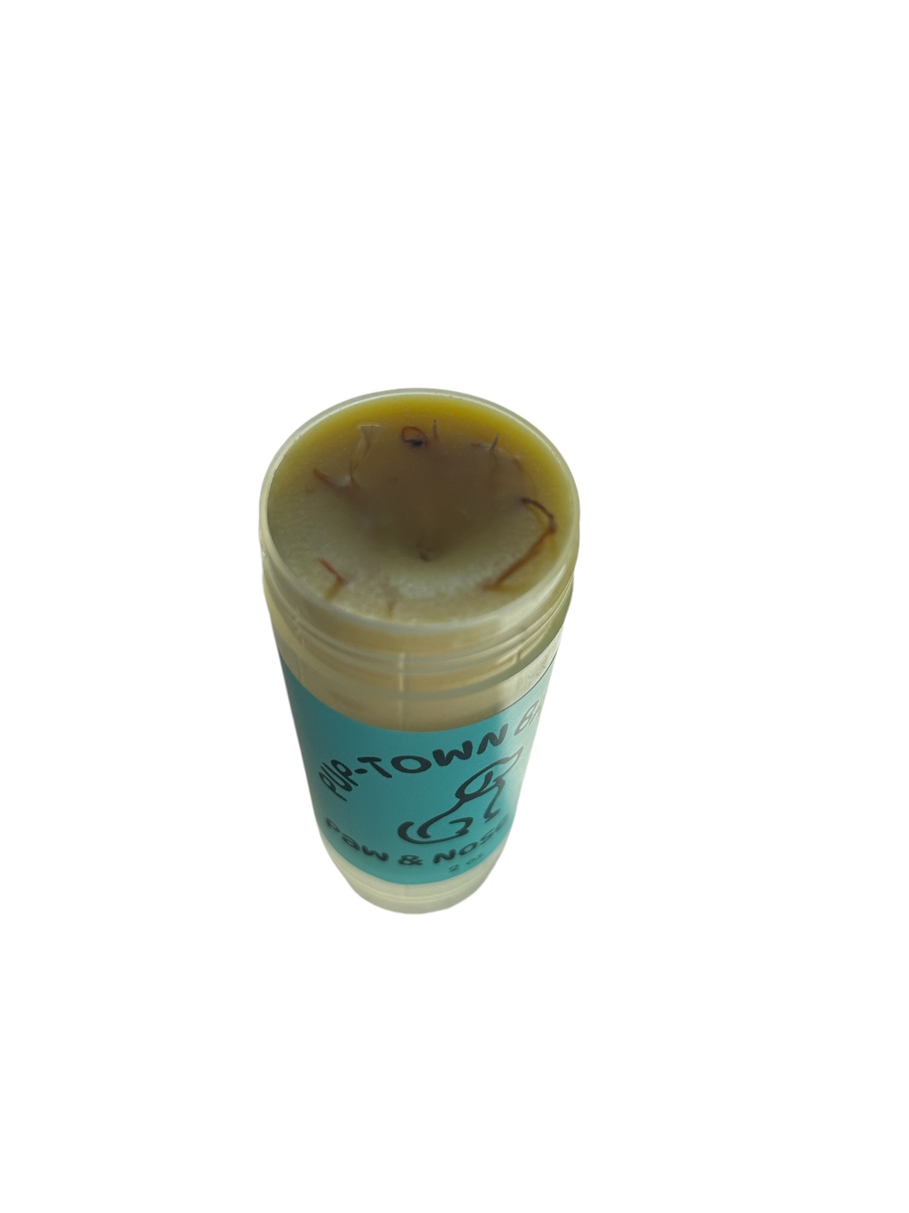 Comfort your sweet fur baby's dry cracked paws with some all natural paw balm. Made with 100% natural pet safe ingredients! Pup-town's Paw & Nose Balm is made with house-made Calendula infused olive oil, beeswax, shea butter, coconut oil and vitamin E. All of these ingredients were selected to be safe and even beneficial for you dogs health. We choose to use calendula oil in our paw balm because it is pet safe, seals and soothes cracked skin. It is even safe enough for your pets to lick their paws after application. Coconut oil and beeswax soothe even the driest of paws.